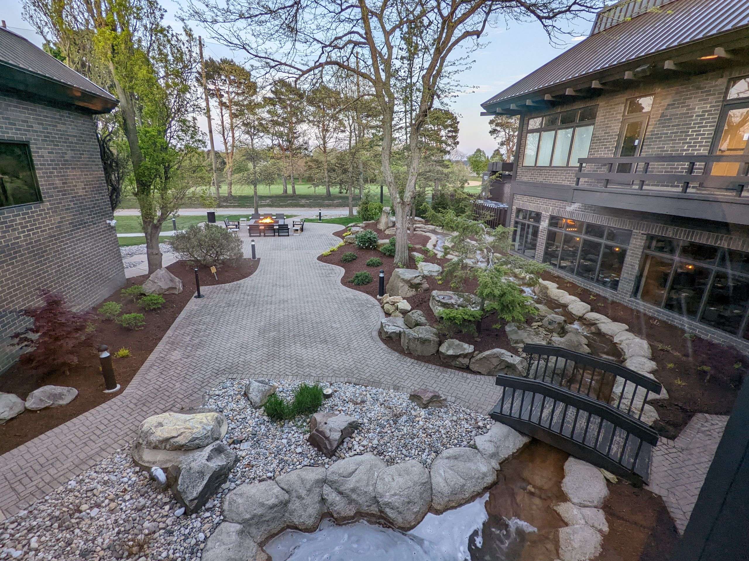- Relish in the tranquility of the patio water features and outdoor firepits