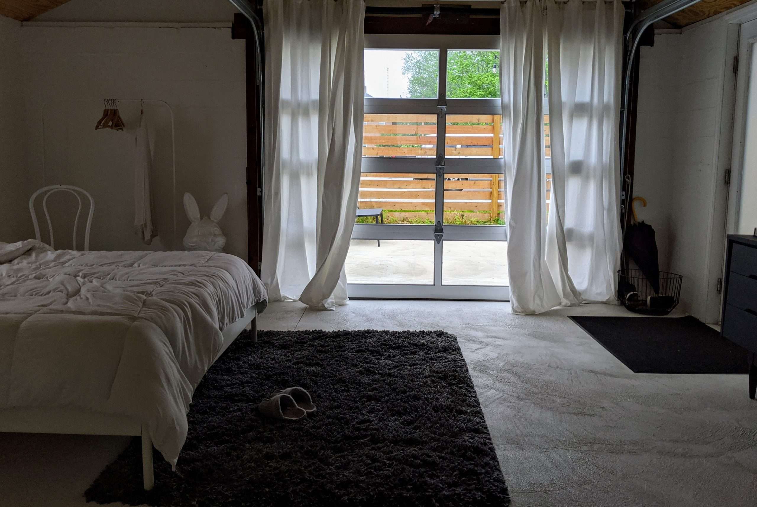 Looking for a unique place to stay in Columbus? The Le Petite Maison bungalow is an open and airy artistic getaway. It is within walking distance of many public art displays and in the heart of the Downtown Columbus Arts District. It’s perfect for two people and has a private entrance, a hip patio, a full glass garage door that opens, and a comfortable bed.